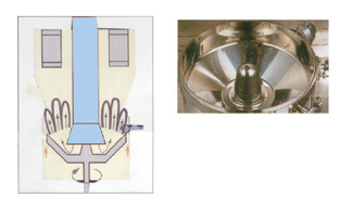 此设备使原料粉或母粒在弧形角度磨擦转盘中通过选择周期时间、转速、磨擦形态和转盘周边的气流作行星运转(公转、 自转),同时按一定规律喷入适量经雾化的粘合剂和注入粉末,湿法制粒机在微小液滴的作用下凝聚成微小的球形颗粒,再经层层包衣(膜), 自动升降流化干燥成球形度至真的微丸。本机集机、电、气、一体化设计的高新技术产品,属国内首创,具有“湿法造粒、干燥、成球、包衣”为一体的全功能球形缓控释微丸设备。